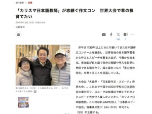 いつも温かく見守っていただき、本当にありがとうございます。このたび、朝日新聞デジタルにて「大森杯・『日本語作文』スピーチ世界大会」の記事が掲載されました。これまで続けてきた活動を、こうして取り上げていただけたこと、そして世界に向けて一歩踏み出せたことを、とても嬉しく思っています。ぜひご覧いただけましたら幸いです。